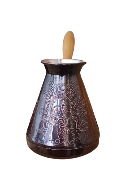Ця джезва — не просто посуд для приготування кави, а справжній витвір мистецтва, виготовлений вручну з любов’ю та увагою до деталей. З узором у вигляді павліна, вона додасть не тільки вишуканості вашому ранковому ритуалу, але й подарує неповторний смак справжньої турецької кави. Це чудовий подарунок як для себе, так і для улюблених кофеманів, який привнесе в повсякденність трохи елегантності та стилю.